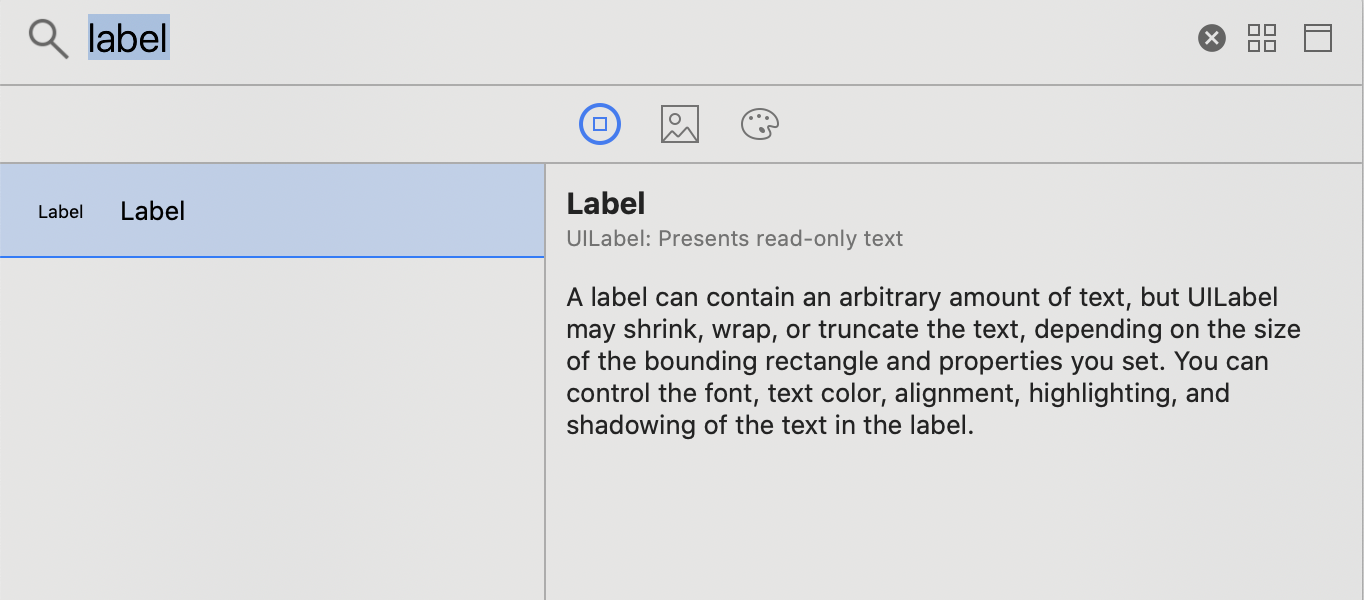 Library Pane - Has user interface elements, code snippets, files templates. The Library pane is now a free floating panel that you can access via the plus sign (+) button near the top right.